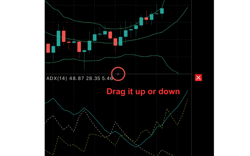 A small circle will appear on the boundary line between the main and indicator windows. Drag it up or down to adjust the display areas.