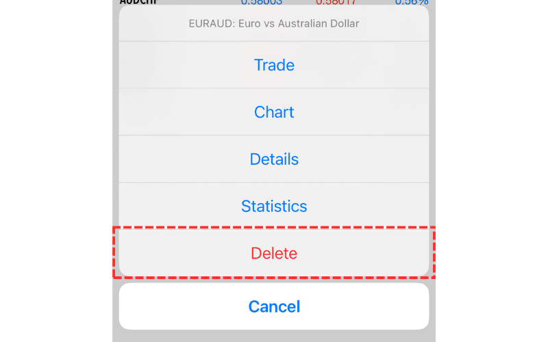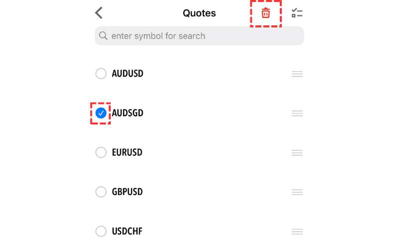 Tap the symbol name you want to remove, and from the menu that appears, tap 'Delete' to remove it from the display.