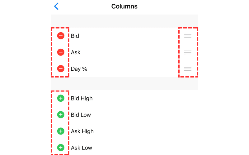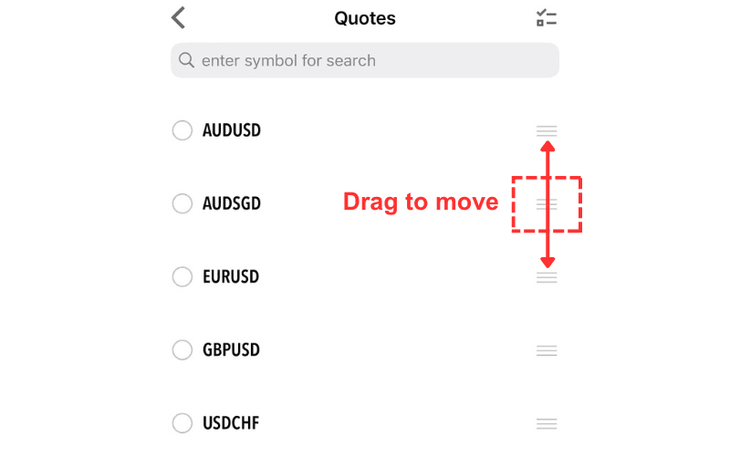 To change the display order, enter Detailed Mode, tap the pen icon in the top right, and then drag the icon next to the symbol name up or down to move its position in the list.