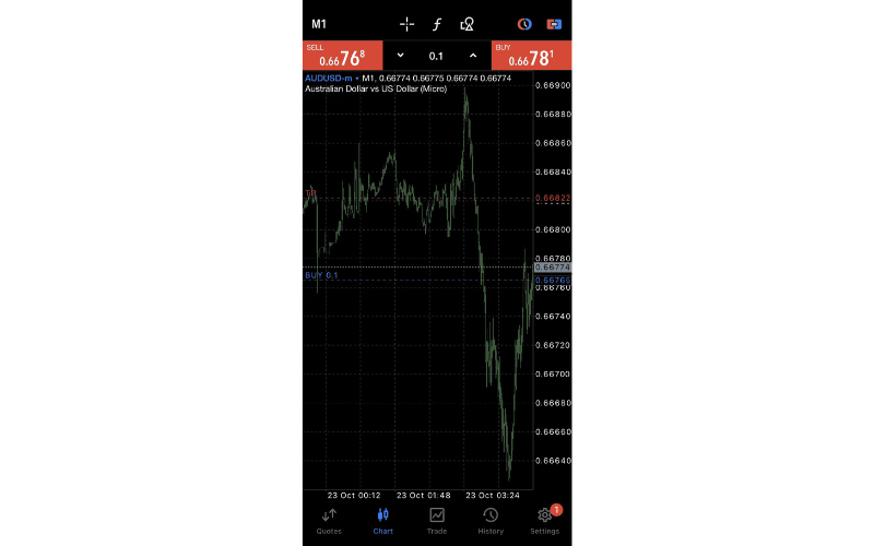 While viewing the charts, you can execute one-click orders or modify orders.