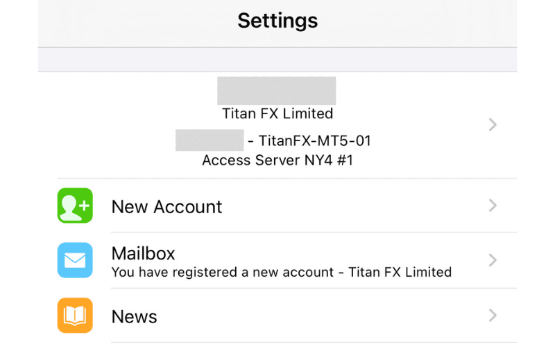 The iOS version of MT5 operates through five menus at the bottom of the screen.