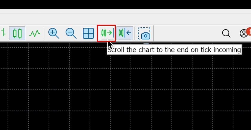 Right-click on the chart, and from the menu that appears, click 'Auto Scroll' to toggle the auto-scroll function on and off.