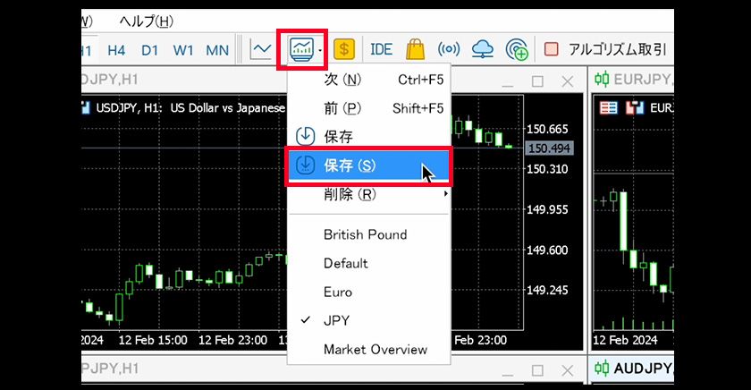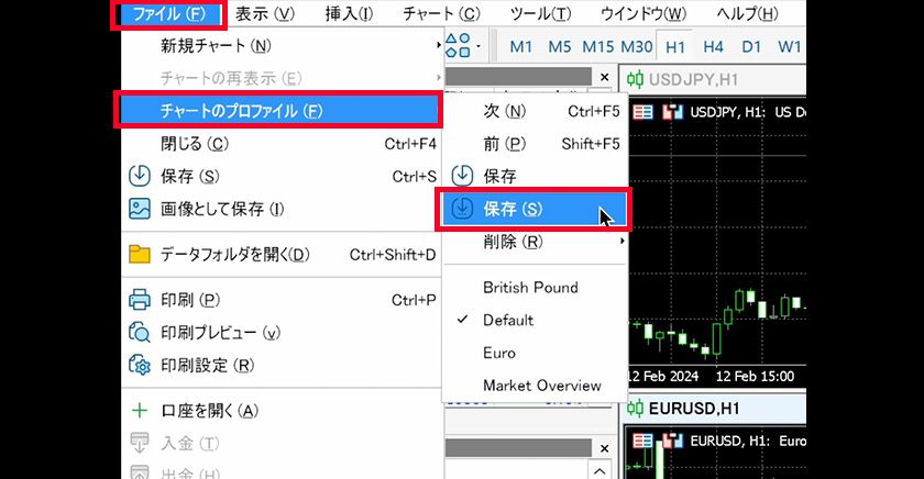 A chart profile in MT5 allows you to save a combination of frequently viewed charts as a "profile" and switch between them as needed. For example, you can create a profile for USD/JPY and cross-yen pairs, and another for dollar pairs, then switch between these profiles for easy monitoring.