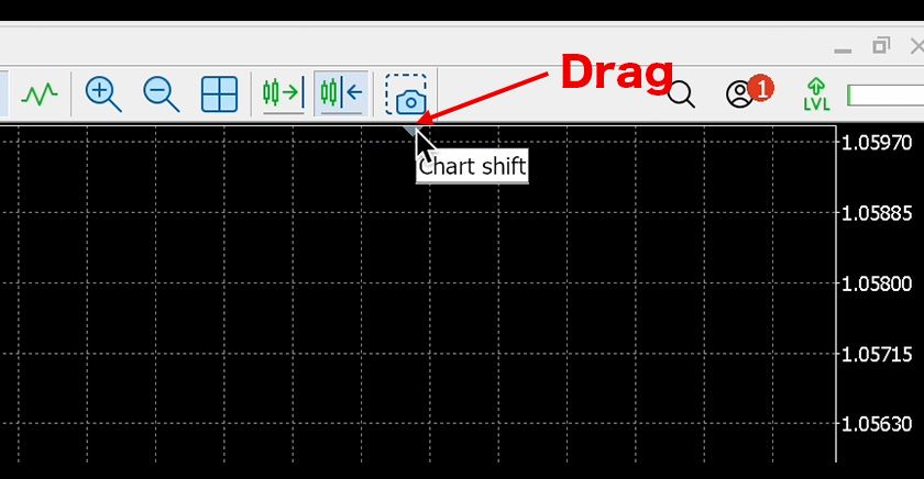 Click the chart shift icon in the toolbar to toggle it on and off.