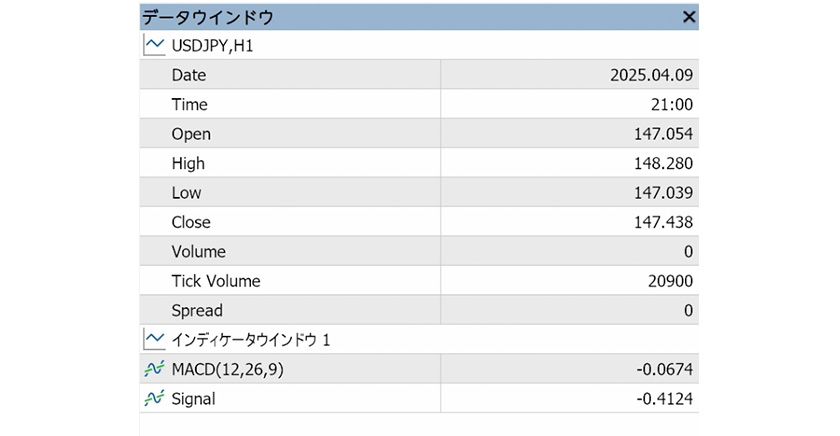 In MT5, the Data Window displays information such as prices at the cursor position on the chart.