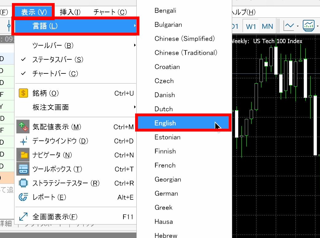 MT5 allows you to freely switch between language settings.