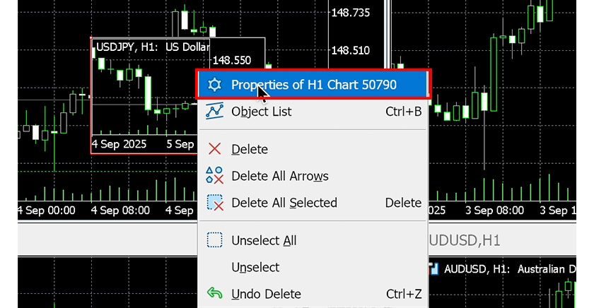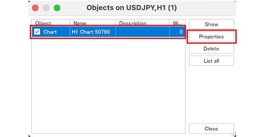 Right-click on the chart and select "Object List".