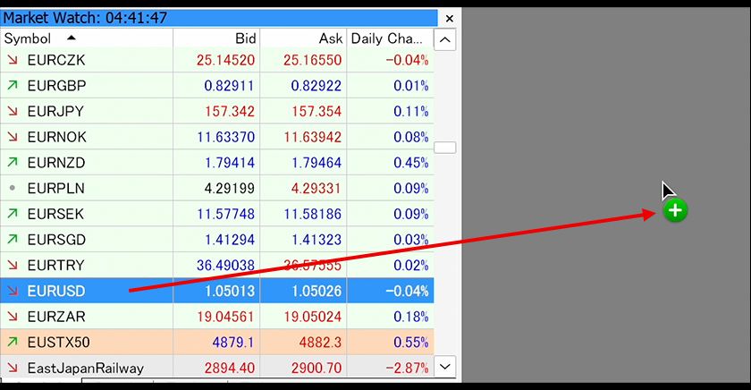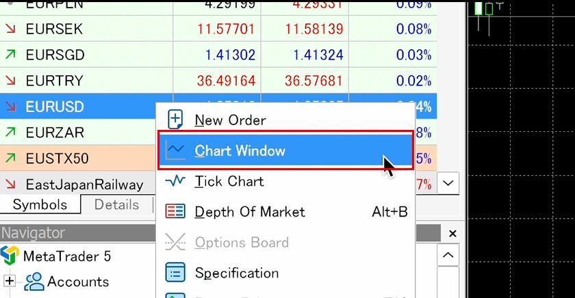 Right-click on the symbol you want to display in the Market Watch and select "Chart Window".