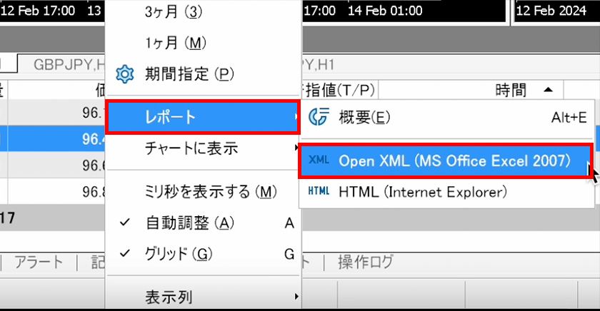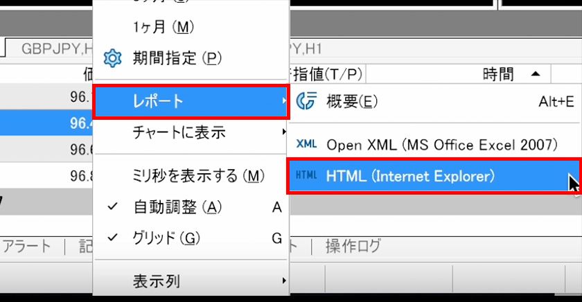 Mac版のMT5では、損益レポートをエクセル形式やHTML形式で作成することができます。