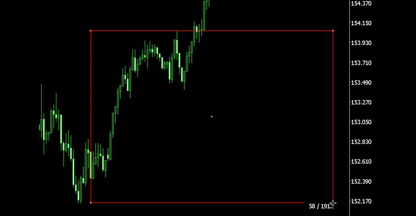 The cursor will switch to rectangle drawing mode. Click and drag on the chart to draw a rectangle at your desired position.