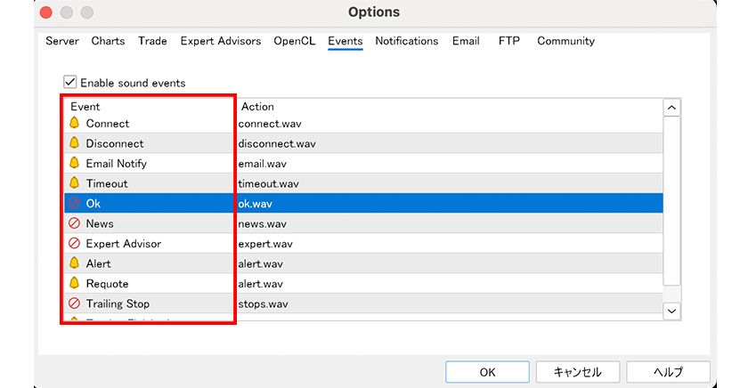 In MT5, sounds are played when logging in or executing trades. These sounds can be freely customized in the settings.