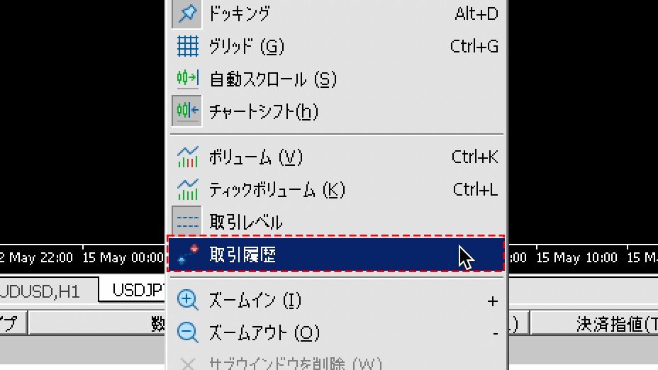 To toggle the display, right-click on the chart and select 'Trade History' from the menu that appears to switch it on or off.