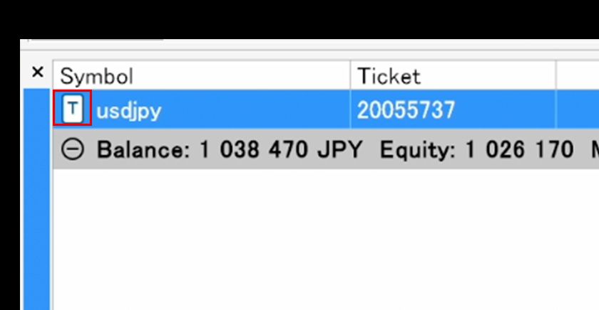 When a trailing stop is set, a 'T' icon appears to the left of the position in the 'Trade' tab of the Terminal.