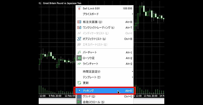 Right-click on the chart and select "Docking" from the menu to toggle between "Dock" and "Undock."