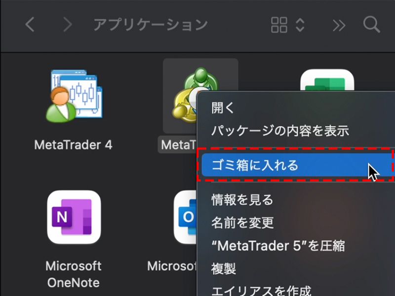 - Right-click "MetaTrader5" and select "Move to Trash."