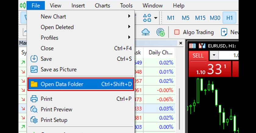 Select 'Open Data Folder' from the 'File' menu in MT5.