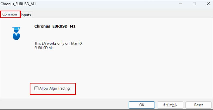 In the settings window that appears, check 'Allow Algo Trading' in the 'Common' tab.
