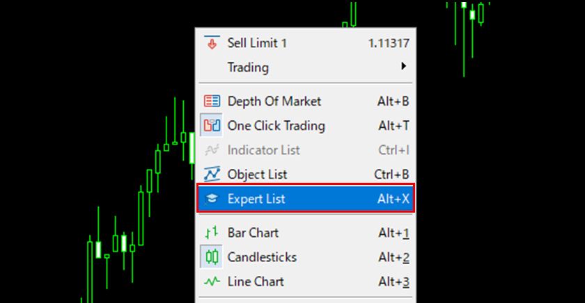 To stop an EA, right-click on the chart where the EA is running and select 'Expert List' from the menu that appears.