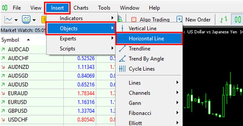 How to Draw Horizontal Lines in MT5 (Windows) | Titan FX Research Hub