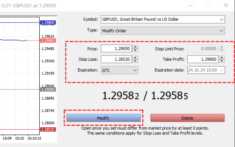 ※ When one-click trading is ON, the order is modified immediately, and if it is OFF, the order screen will appear for confirmation before clicking the 'Modify' button completes the changes.