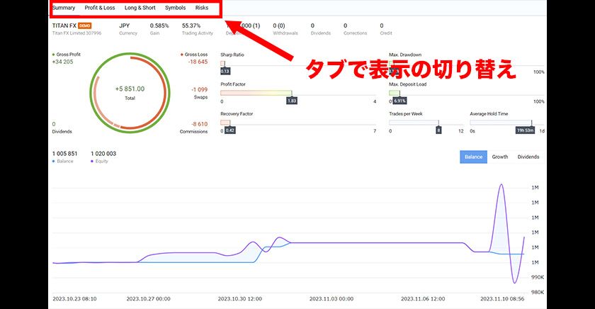 The trade summary will be displayed in the chart area. You can switch between different tabs at the top to check various details.