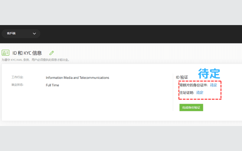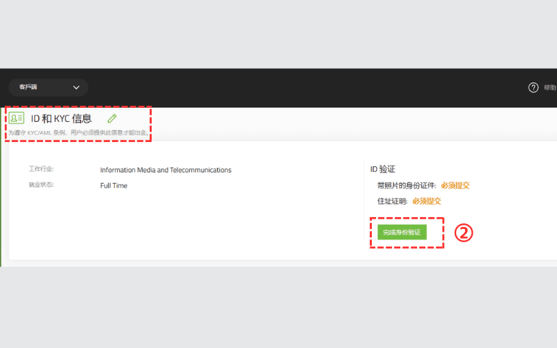 In the 【ID and KYC Information】 section, click “Complete Identity Verification”.
