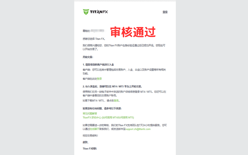 Once your verification is approved, you will receive an email with the subject 【Titan FX Verification Passed Notification: Your Account is Now Activated】.