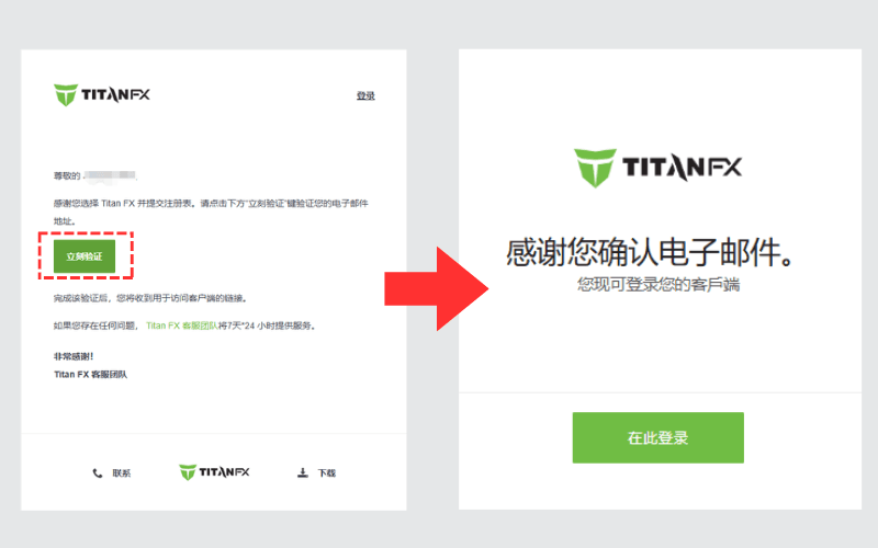 The email address used during registration will receive a confirmation email from Titan FX. Please click “Verify Now” to complete the email verification.