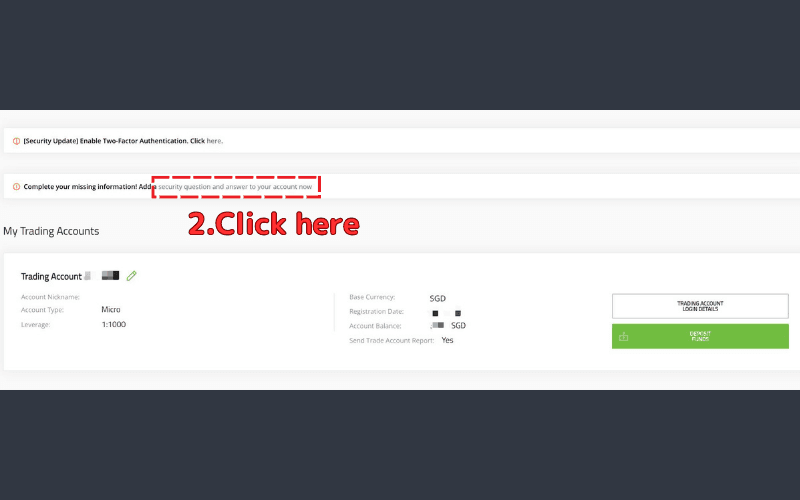 2.Click "Security question and answer to your Account now."