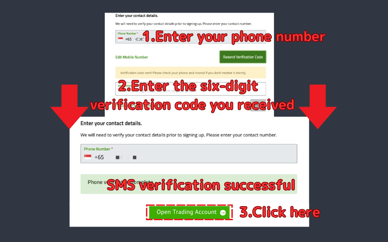 3.Once SMS verification is complete, click "Open Trading Account."