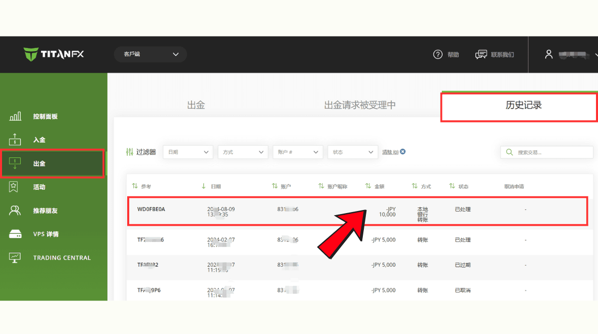 You can also view the completed withdrawal record in the "Withdrawal - History" section of the client portal.