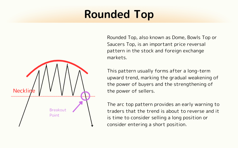 A Rounded Top serves as a warning for traders to consider exiting long positions or initiating short positions.