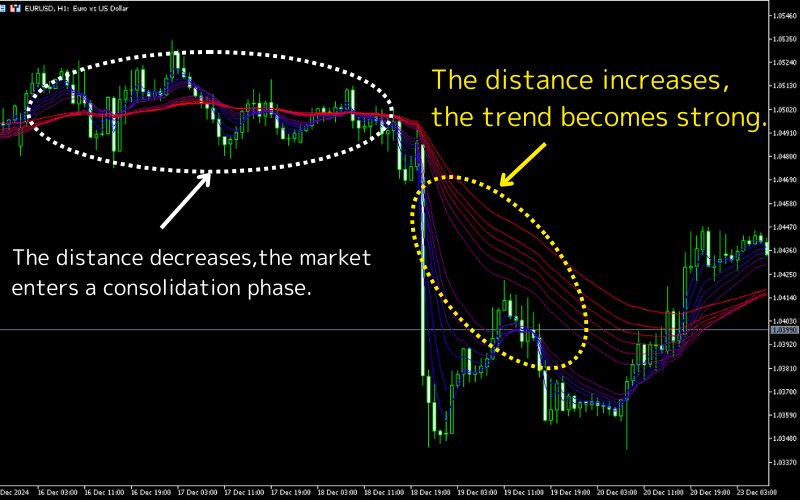 The arrangement of moving averages is an important indicator for identifying the direction of the market trend. When the moving averages are arranged in a specific order, this phenomenon is called "Perfect Order", indicating a strong and persistent trend.