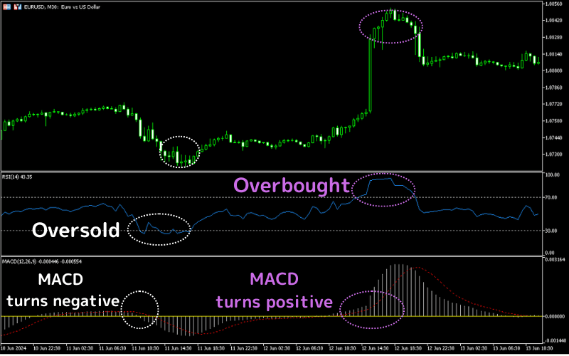 When RSI signals overbought or oversold conditions, MACD can help confirm whether it aligns with the overall market trend, filtering out false signals and increasing the success rate of trades.