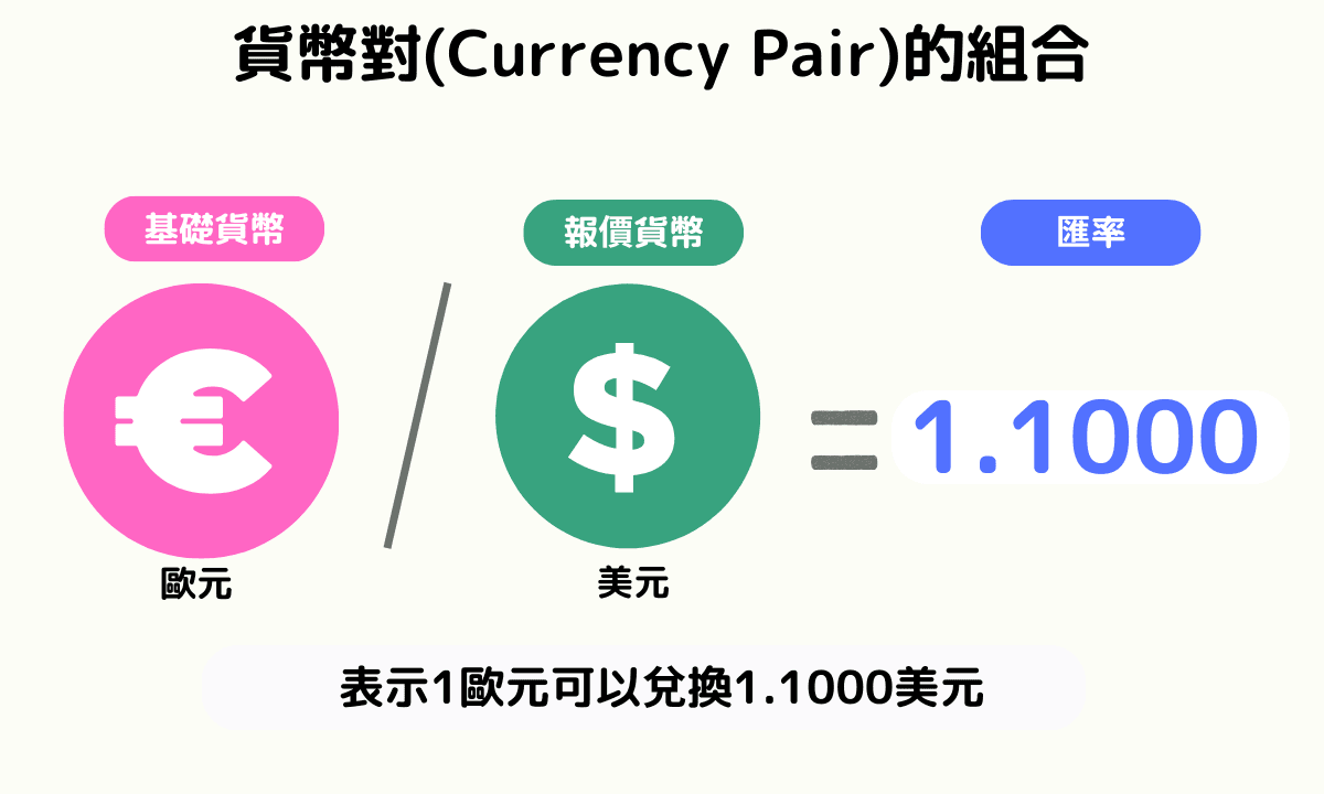 貨幣對(Currency Pair)由基礎貨幣和報價貨幣組成。例如 EUR/USD = 1.1000,表示1歐元可以兌換1.1美元。