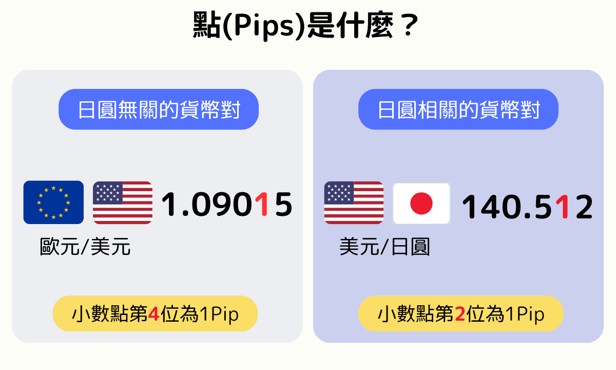 基準點(Pip)是貨幣對價格變動的最小計量單位。對於EUR/USD,1 pip = 0.0001;對於USD/JPY,1 pip = 0.01。
