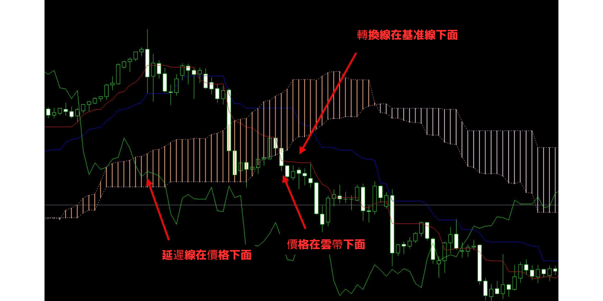 相對地,當轉換線低於基準線時,將判斷下跌趨勢強烈。