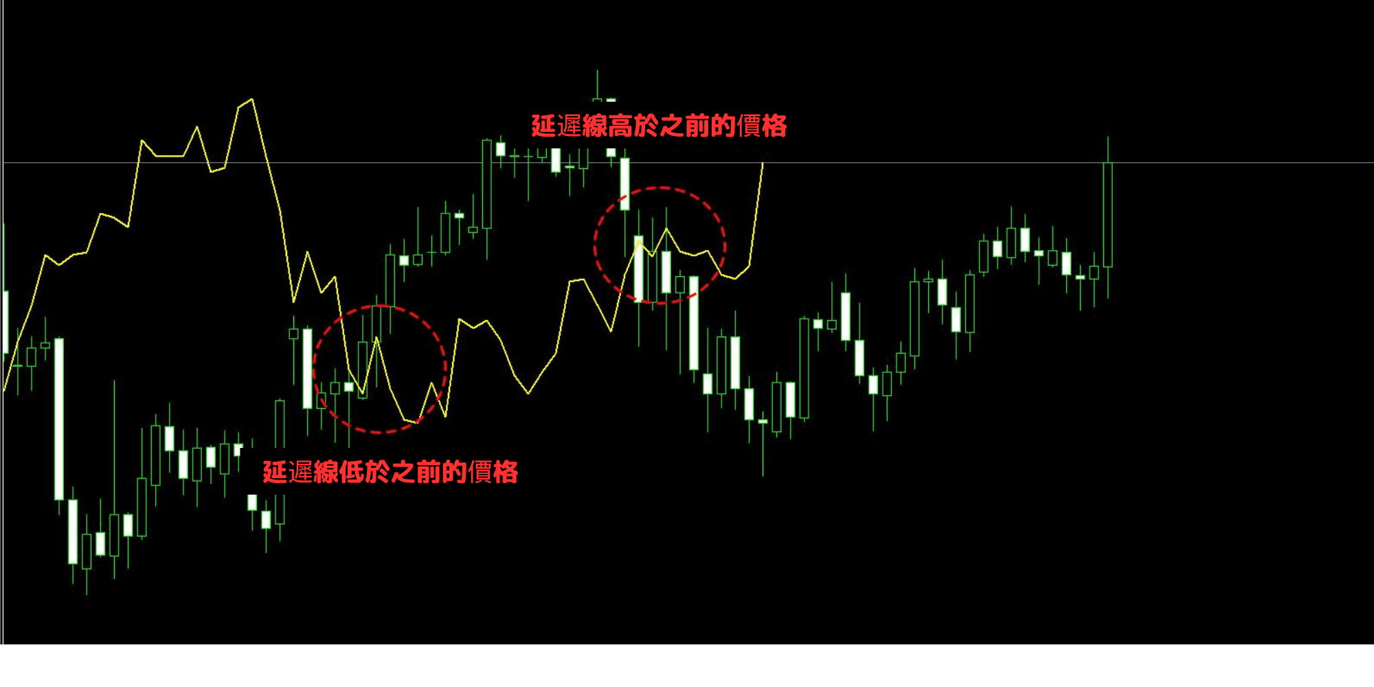 延遲線會比較現在價格與過去價格,當延遲線超過之前的價格,代表趨勢上漲,若低於之前的價格,將判斷趨勢下跌。