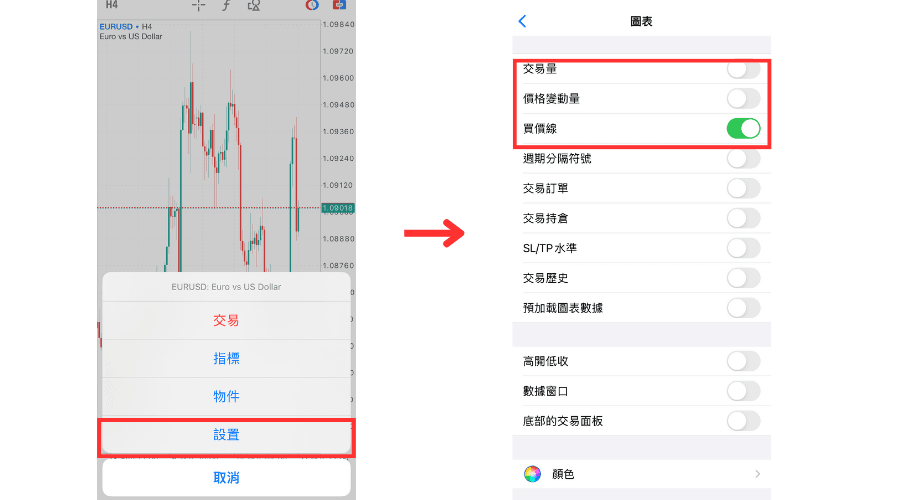 MT5(iOS版)圖表的基本設定方法
