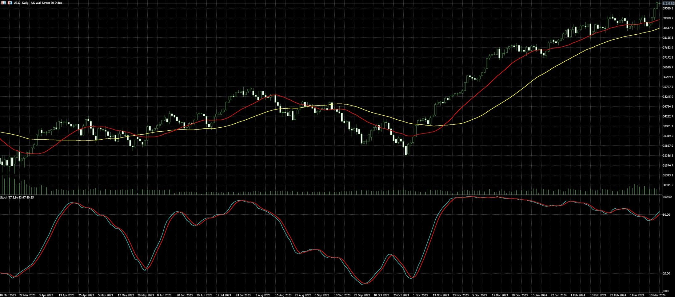 聯準會重申今年三度降息的預期後,市場情緒積極沸騰,美股主指週四 (21 日) 持續高飛,三大指數續登新高,道瓊上漲 0.76%,逼近 40,000 點大關、標普 500 則上漲 0.25%、那斯達克 100 指數上漲 0.25 收 18346.80 點。